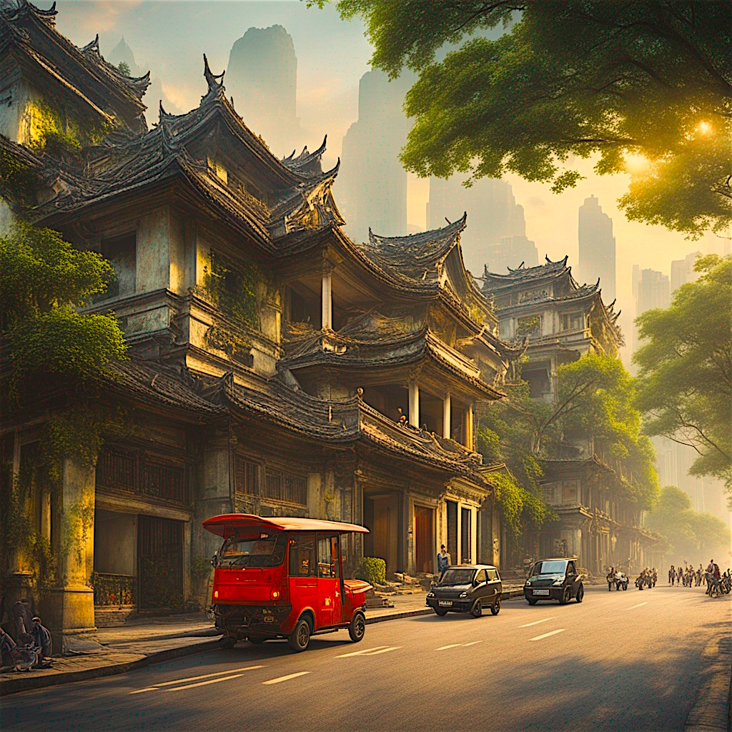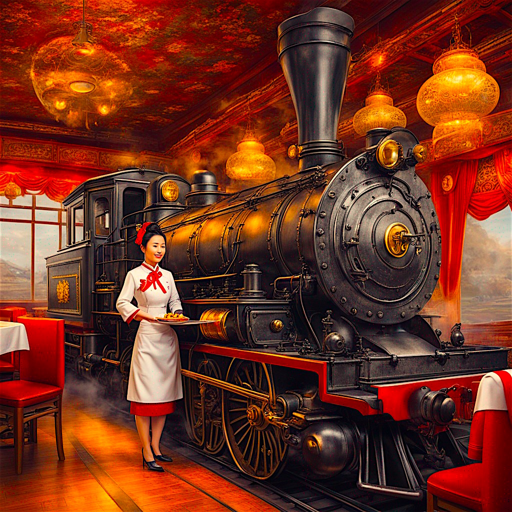 La faim a toujours, chez moi, provoqué des états pré-hallucinatoires qui favorisent des envols vers le monde des rêves. La vitre embuée laisse entrevoir un train qui passe au son lourd des traverses qui vibrent sous le poids de la vieille locomotive à vapeur, lancée toute fumée vers un but que je devine et qui petit à petit se précise dans mon esprit aiguisé par l’appétit : Oui ! Evidemment ! Il s’agit du direct de nuit Saïgon-Hanoï, qui bien entendu ne fera pas halte dans cette gare minuscule où ne s’arrêtent que de petits tortillards improbables, sur les contreforts de cet Himalaya de carton-pâte. Bon sang que fais-je dans cette campagne à rizières ? Malraux m’avait pourtant donné rendez-vous ici ! Dormir ? Mais où ? Et surtout pourquoi, oui pourquoi dormir alors que tout embaume … le curry !